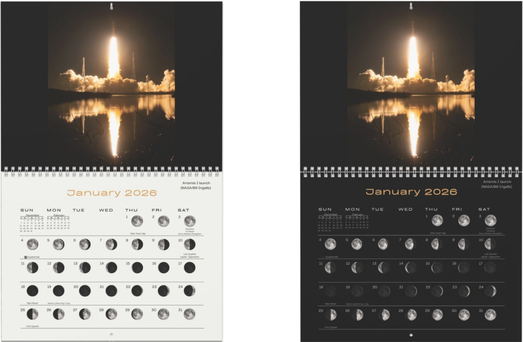Check out the amazing Artemis I wall calendars and other spacey things on Etsy and Shopify.